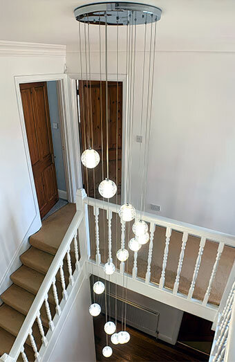 Professional installation of all types of lighting fixtures, including pendant lights, downlights, oyster lights, and chandeliers for homes and businesses.